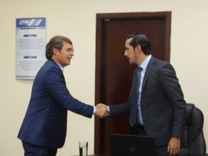 En la cita participaron gerente general de CFN, ingeniero Munir Massuh; el gerente de la División de Productos y Servicios, Diego Cevallos; y el gerente de División de Crédito, Virgilio Pesántez.